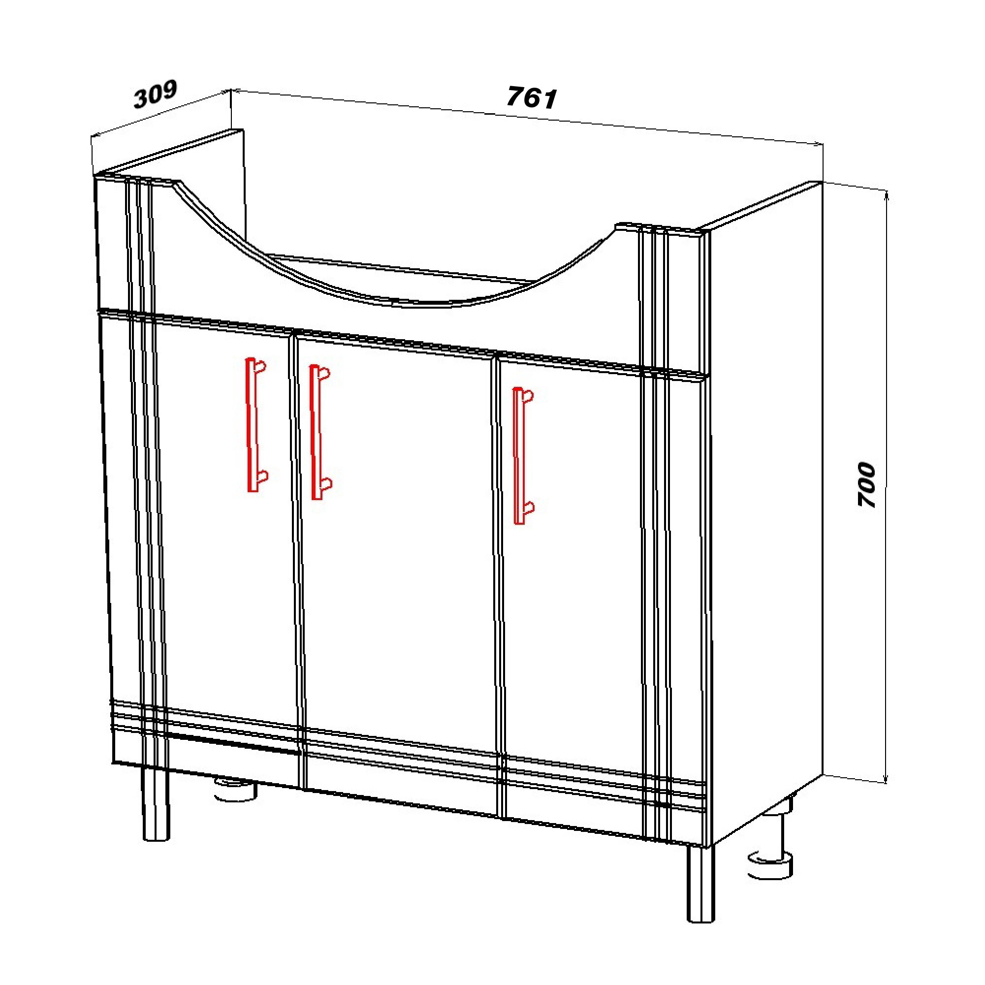 | Комплектация | Тумба, 3 ножки (2 передние хром, 1 задняя пластик), крепление к стене, фурнитура |