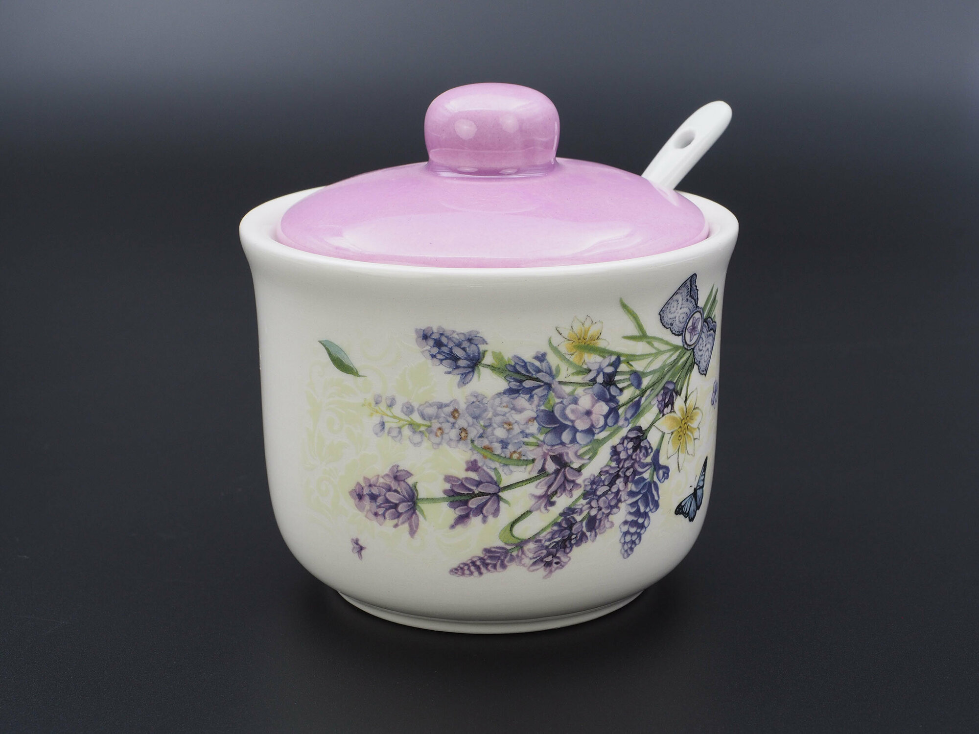 Сахарница С ложкой "прованс лаванда" 10*10 СМ. высота=9,5 СМ. / 300 МЛ.358-2016