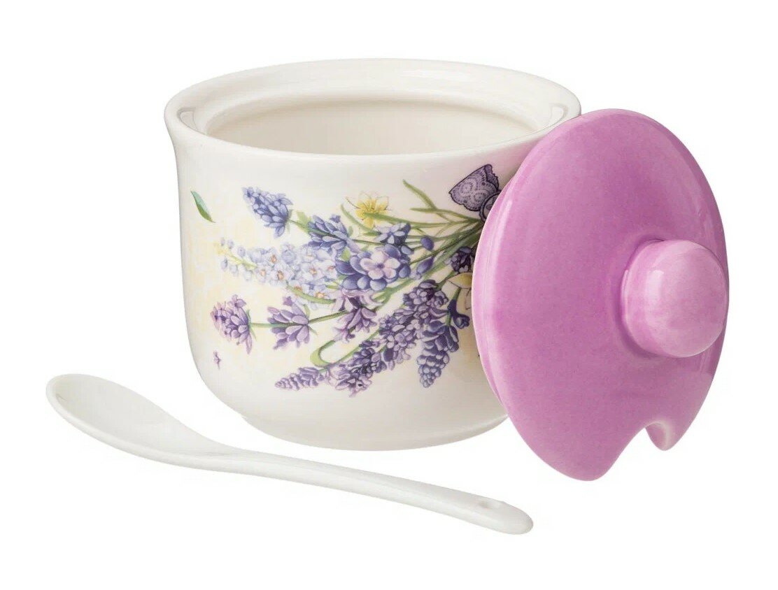 сахарница с ложкой прованс лаванда 10х10 см высота 9,5 см / 300 мл