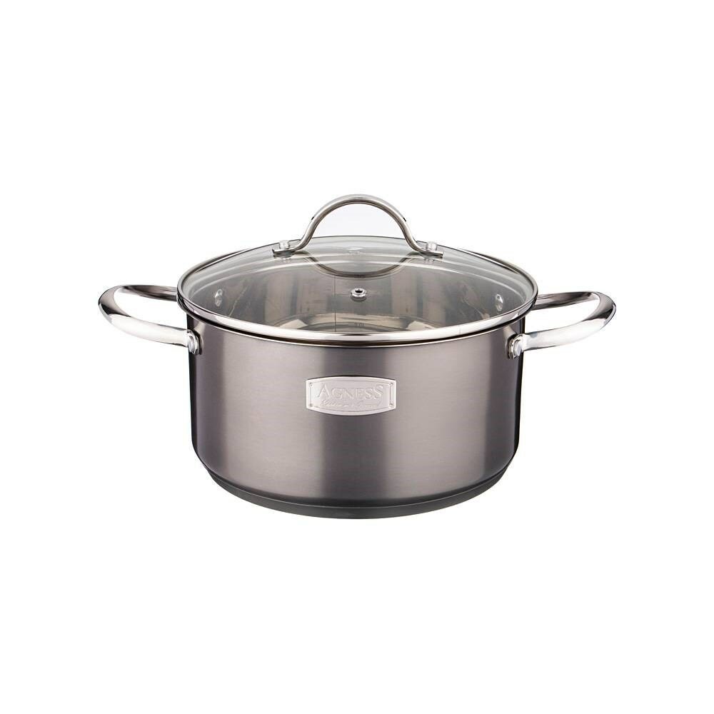 Кастрюля agness со стеклянной крышкой, нерж.сталь, 1,5л 16х8,0 см серия craft collection