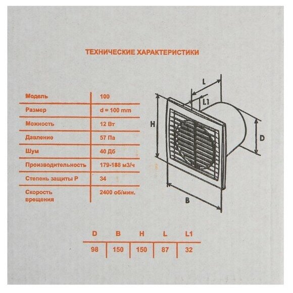 Вентилятор вытяжной "КосмоВент" В100И, d=100 мм, 10 Вт, 40 дБ, 105 м³/ч, без выкл, индикатор
