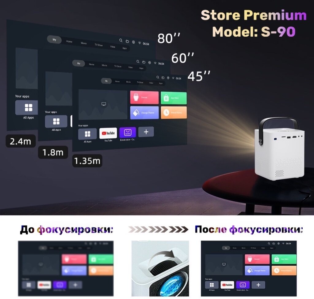 Ниже Вы можете прочитать отзывы на Проектор для просмотра фильмов Store Premium S-90 (BlueTooth, Wi Fi + Подключение к Телефону) / Проектор для офиса / Видео проектор 4 К Full HD для дома, ознакомится с подробными характеристиками, посмотреть интересные обзоры и фотографии на Проектор для просмотра фильмов Store Premium S-90 (BlueTooth, Wi Fi + Подключение к Телефону) / Проектор для офиса / Видео проектор 4 К Full HD для дома.