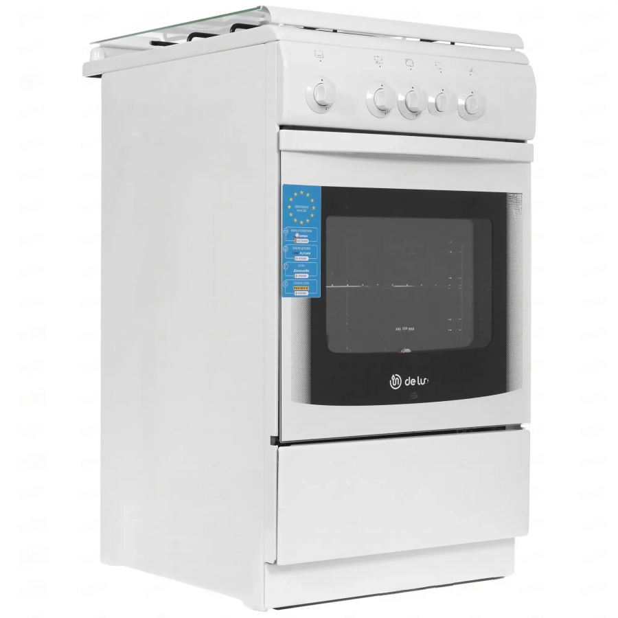 Плита газовая De Luxe 506040.05г, стеклянная крышка, белый интересное: