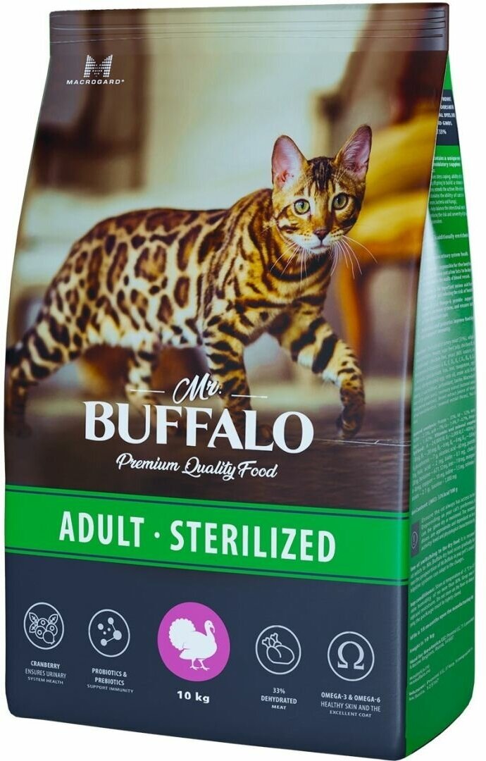 MR.BUFFALO STERILIZED 10 кг сухой корм для кошек индейка 1 шт