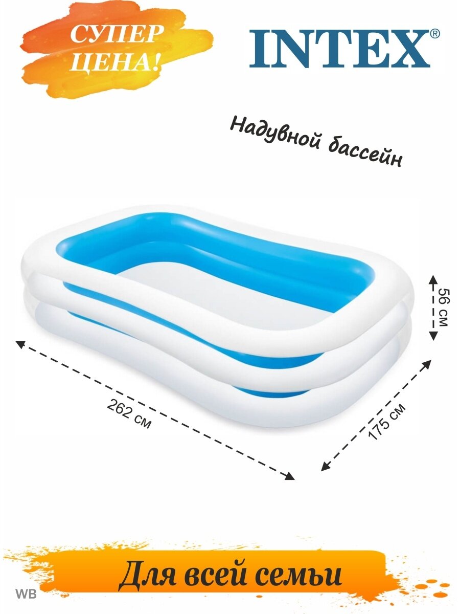 Бассейн надувной Intex «Семейный», 262 х 175 х 56 см, от 6 лет, 56483 интересное: