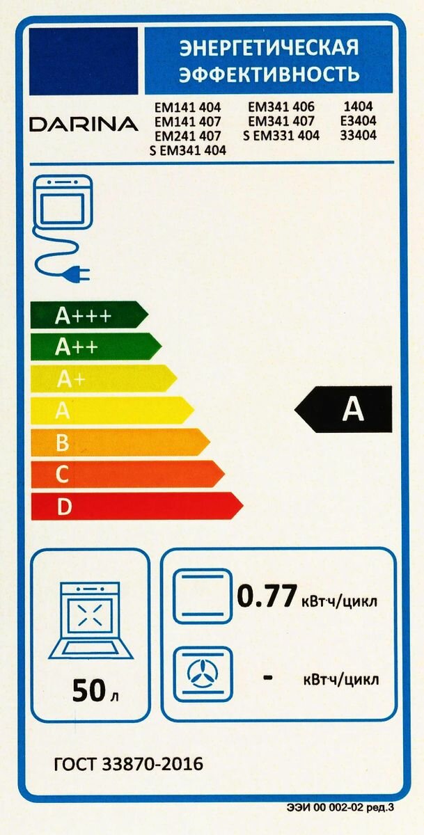 | Объем духовки | 50 л |