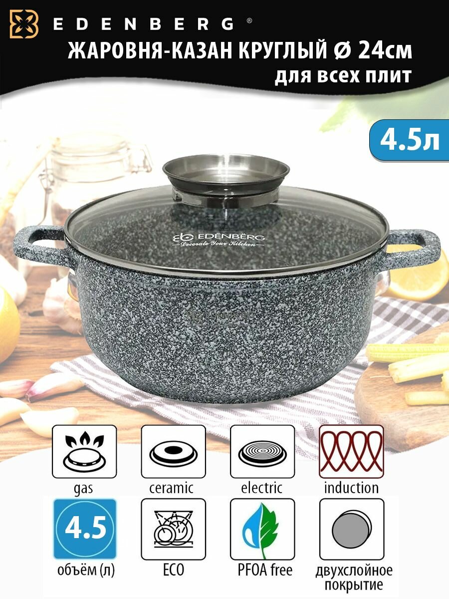 Казан круглый с крышкой Edenberg Gris для духовки и всех видов плит 4.4 л 24 см
