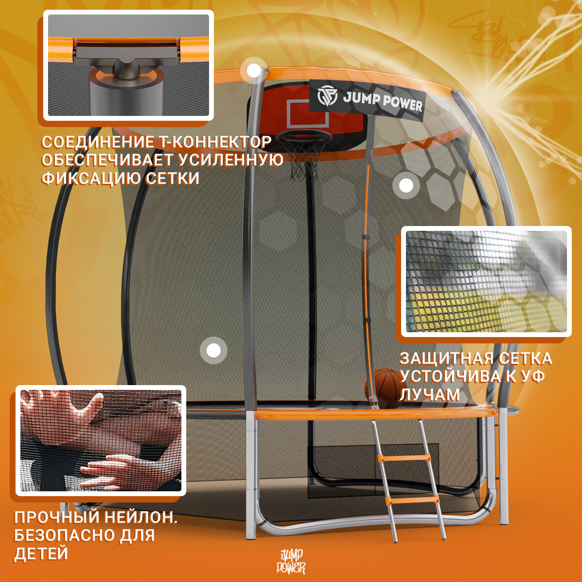 Батут Jump Power Stable Point 10ft с баскет. кольцом, сеткой и лестницей для детей и взрослых