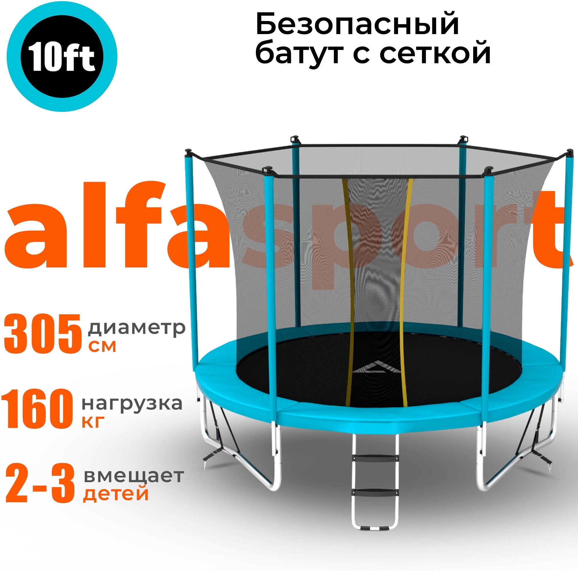 Каркасный батут Alfasport Classic Pro 10 ft 305x305x245 см, light blue интересное: