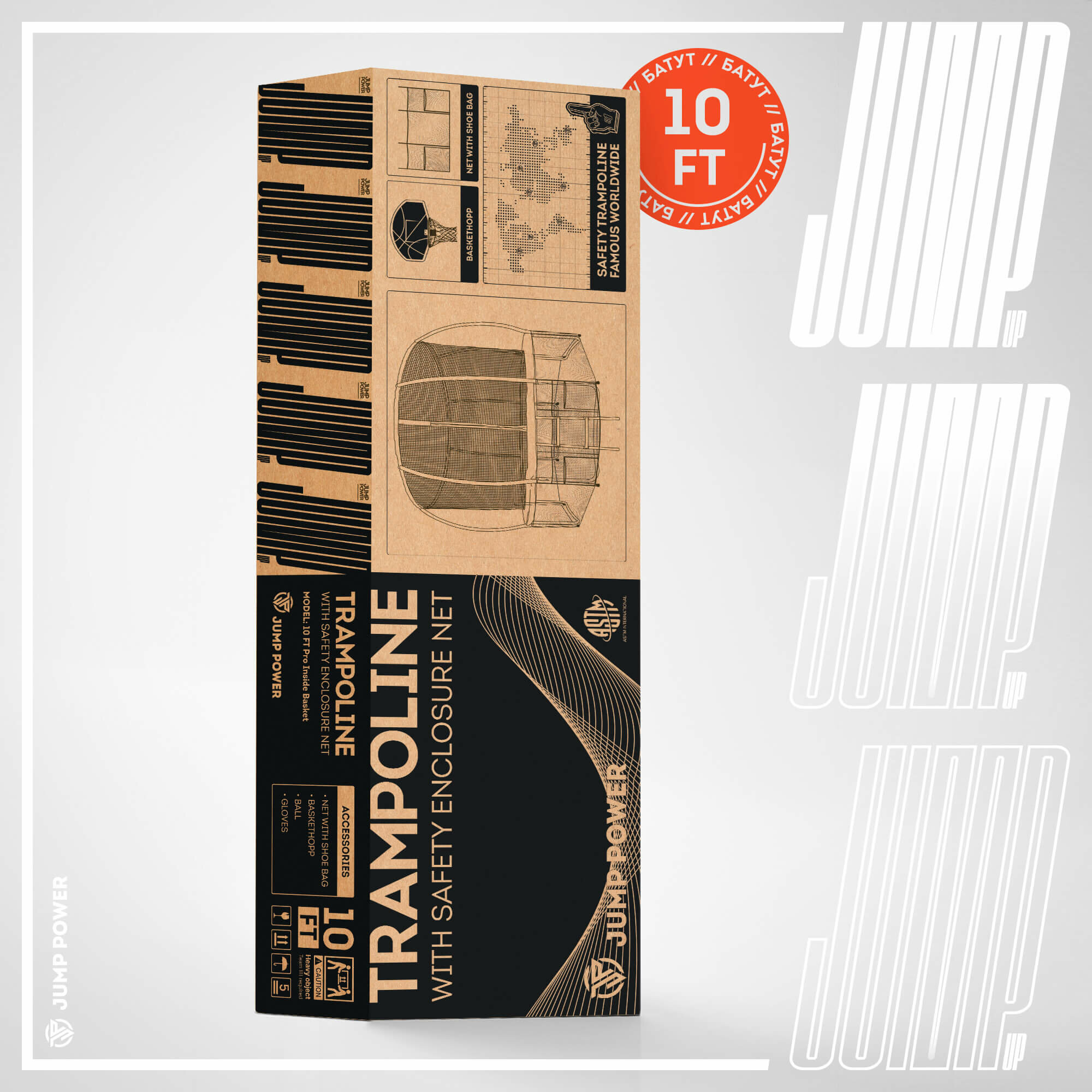 Батут Jump Power 10 ft Pro Inside Basket Green интересное: