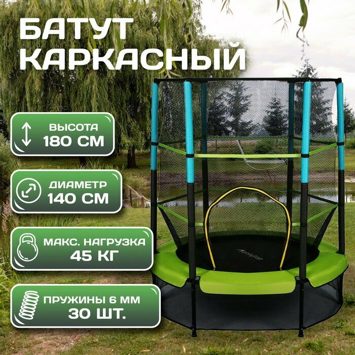 Батут ONLYTOP, d=140 см, высота сетки 145 см, цвет зелёный