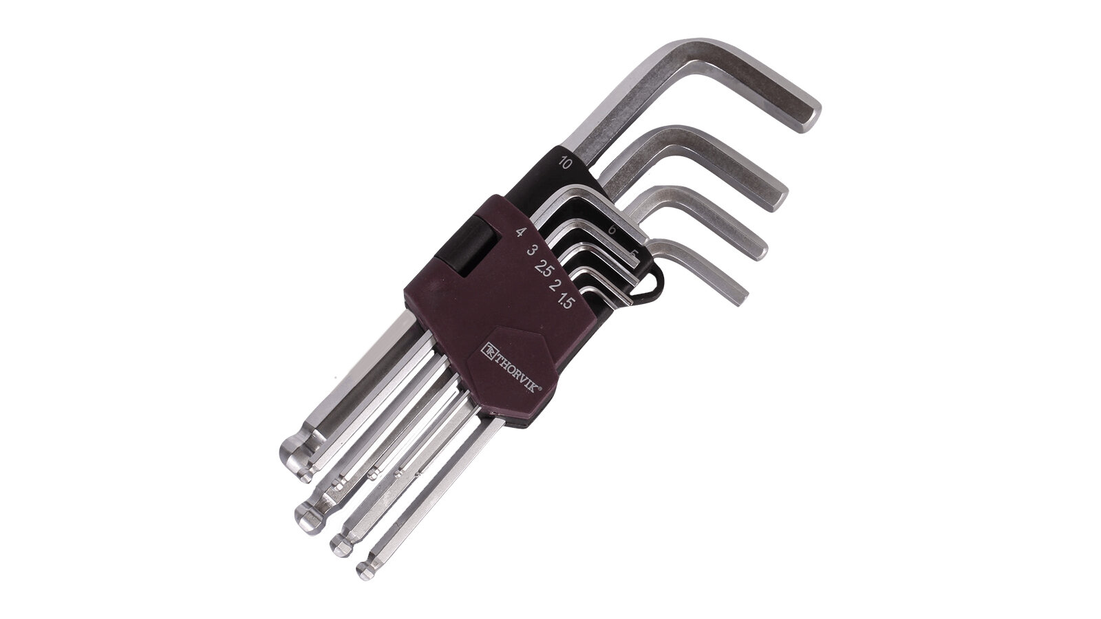 Thorvik HK9S Набор ключей торцевых шестигранных, H1.5-H10, 9 предметов