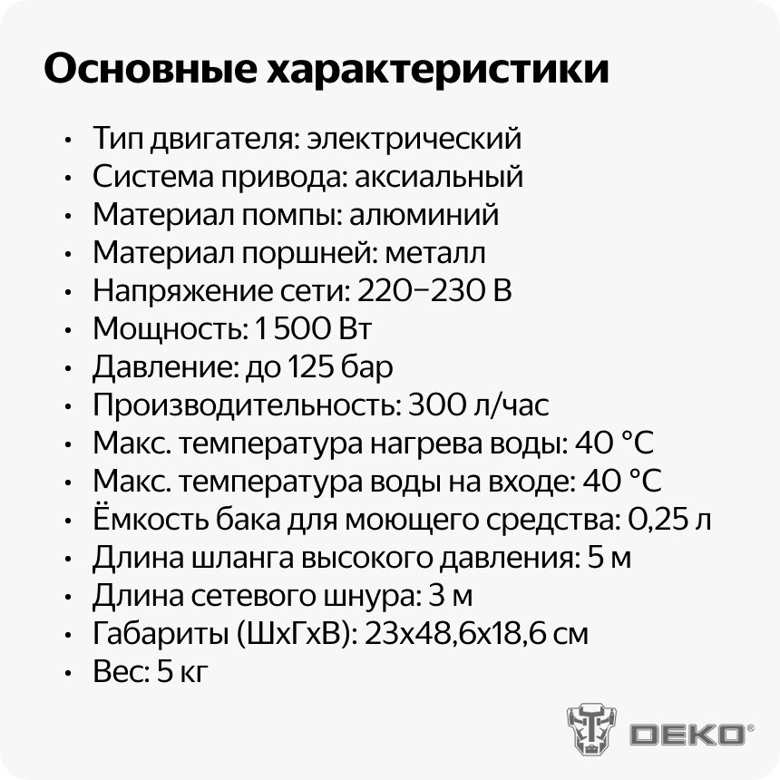 DEKO Мойка высокого давления DKCW125 063-4301 интересное: