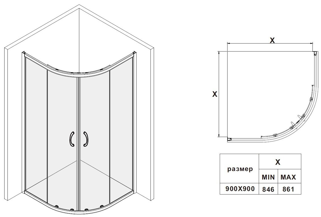 Душевое ограждениe 90*90*195 хром, 6мм прозрачное стекло, покрытие easy clean (1 место) OSTIN AZ-121 S А 90*90*195