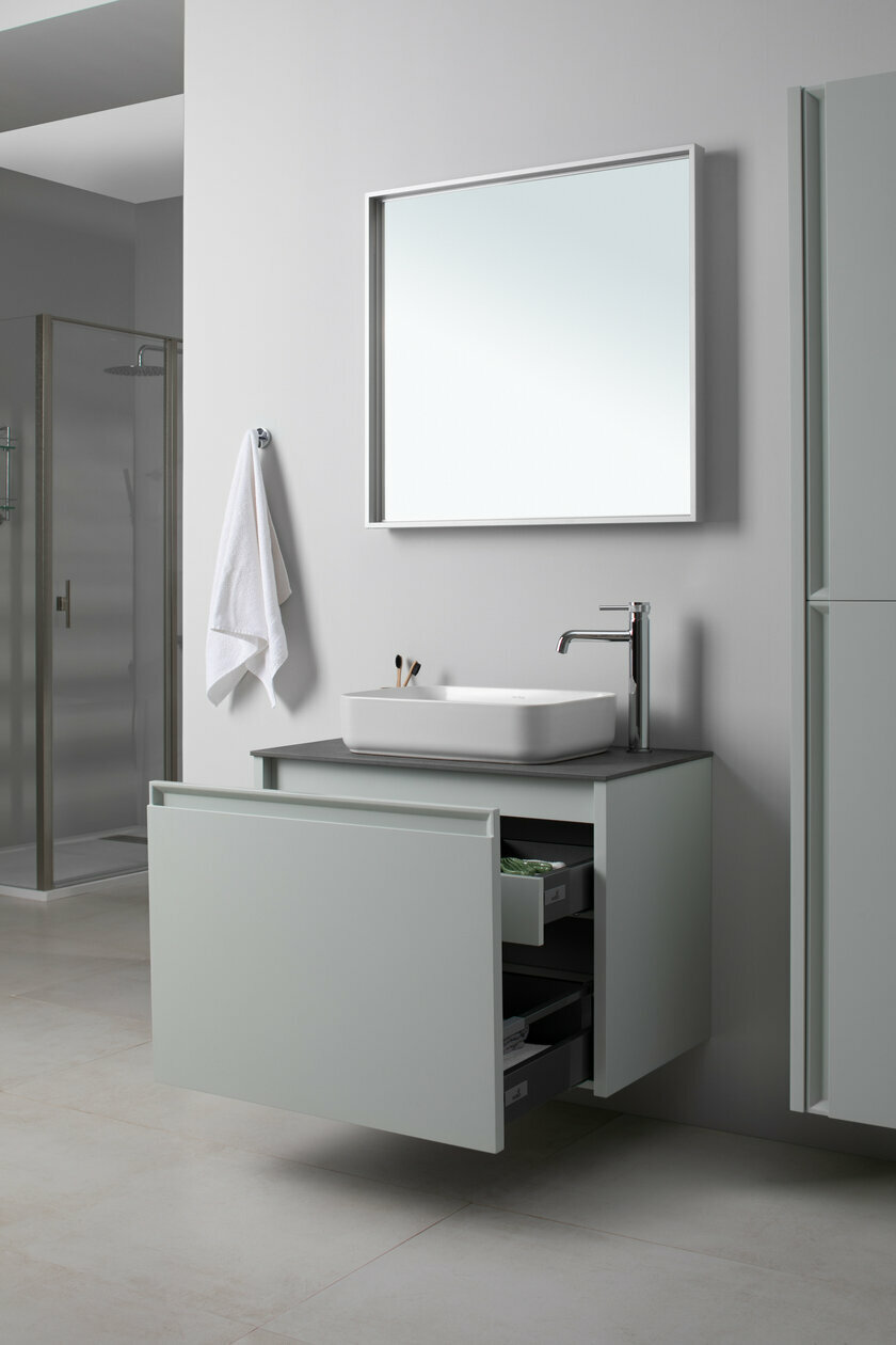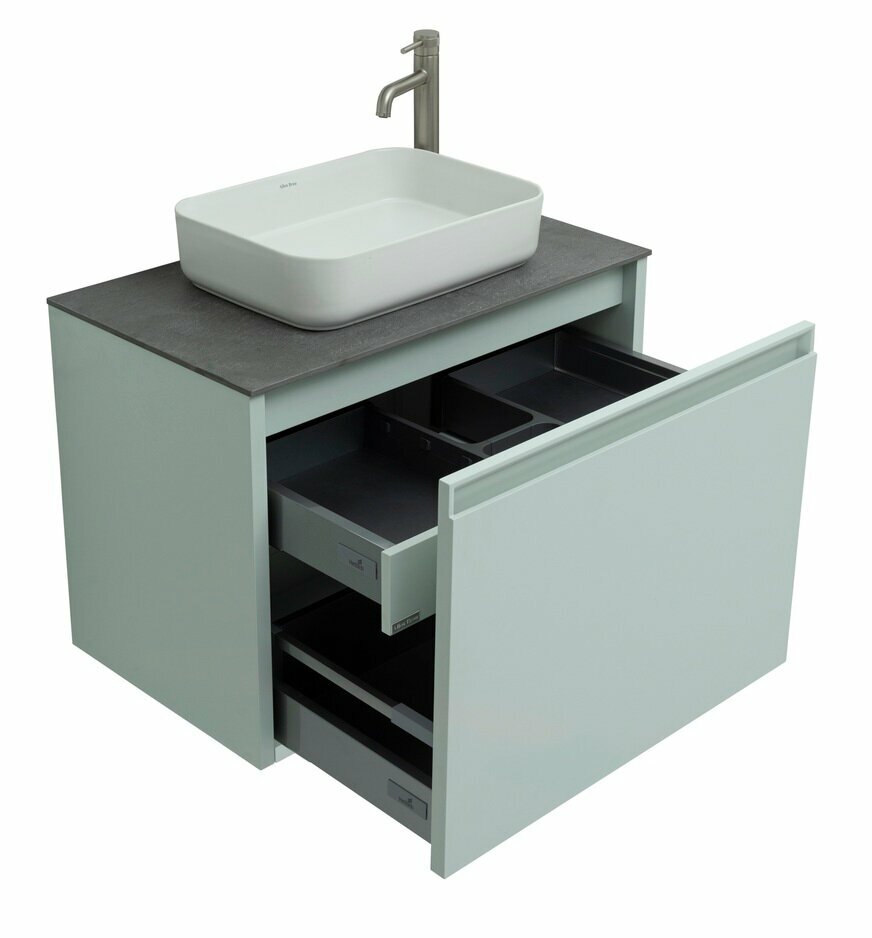 | Дополнительная информация | Плавное закрывание ящиков, полное выдвижение, прочное дно (толщина 16 мм), нагрузка до 30 кг;Надежные подвески Häfele (Germany) с возможностью регулировки по высоте, нагрузка до 130 кг;Тумбы оснащены специальной пластиковой рамой, которая надежно защищает вырез под сифон, служит органайзером и позволяет закрепить дополнительный набор контейнеров для хранения;Толщина боковых стенок тумбы и пенала 25 мм |