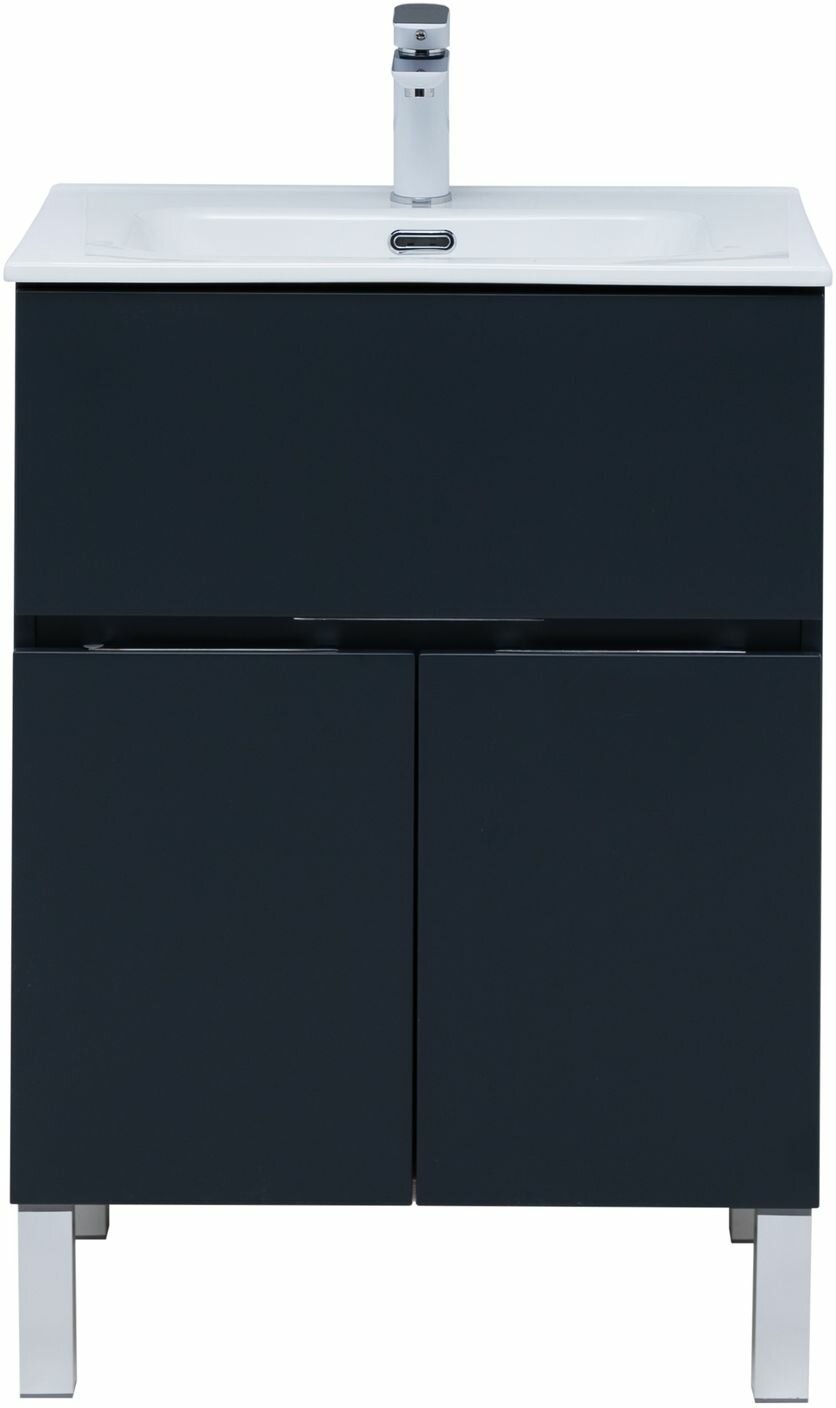 Тумба с раковиной Алвита New 60 1 ящик 2 дверцы антрацит матовая
