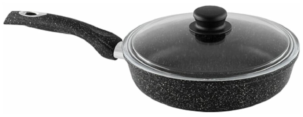 Сковорода 260/70мм гранит с пластиковой ручкой с/крышк. антиприг.покрыт. графит С2652аг
