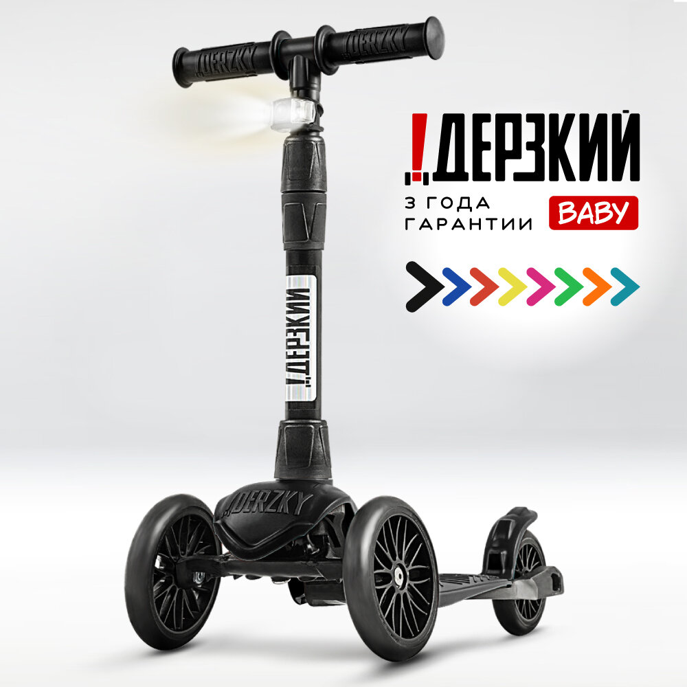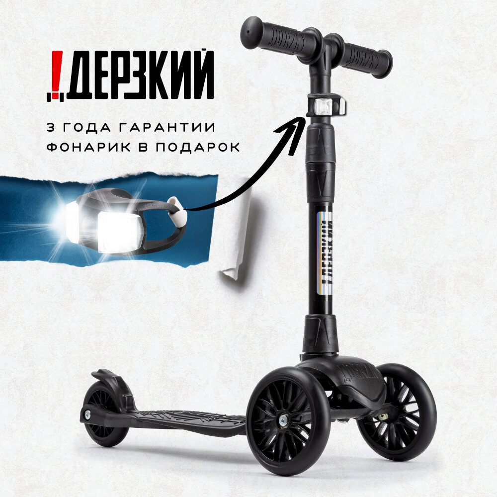 Купить Самокат детский трехколесный 0-5 лет !Дерзкий BABY бесшумное шасси Super CHASSIS 3-колесный 3 года гарантии, черный