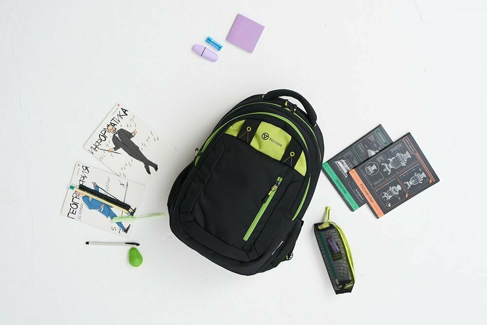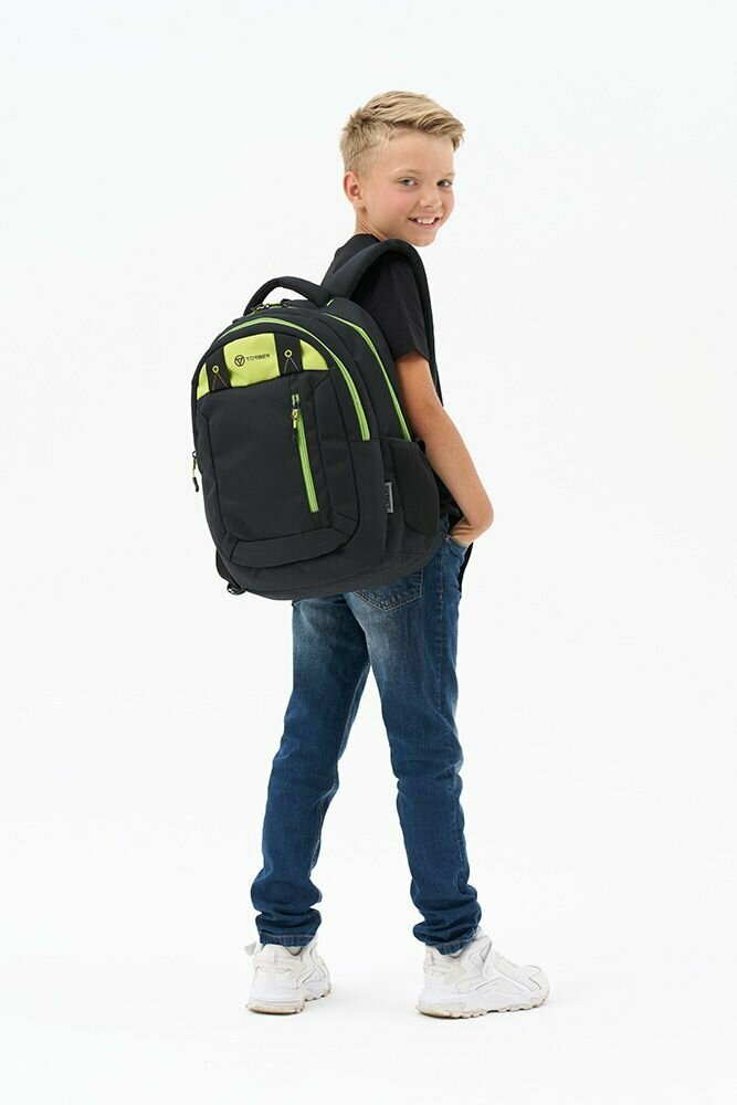 Школьный рюкзак TORBER CLASS X T5220-22-BLK-GRN, черный с зеленой вставкой, полиэстер, 45х32х16 см, 17 л