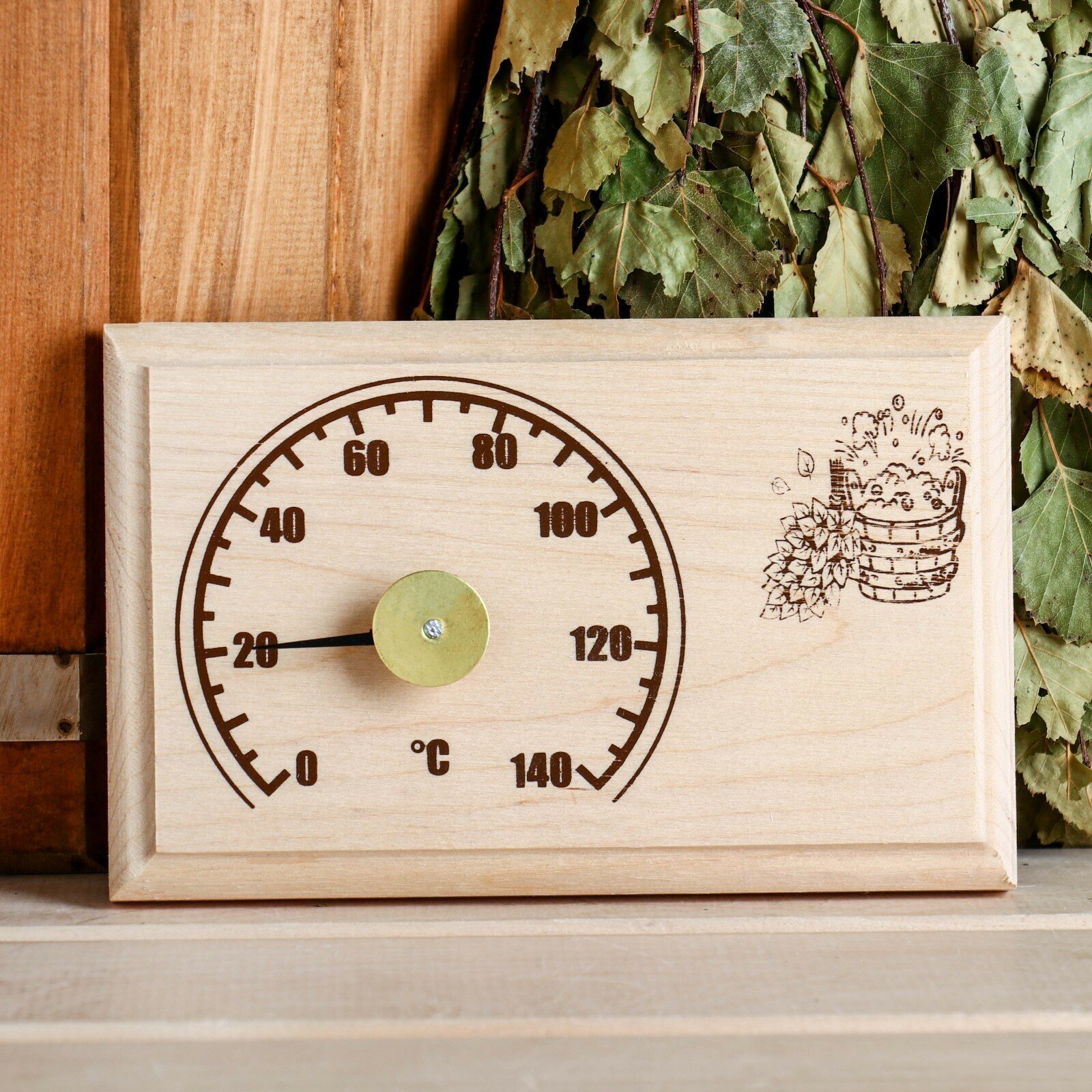 --- Деревянный термометр "Станция банная" открытая бытовая, от 0 до +140 С ,
