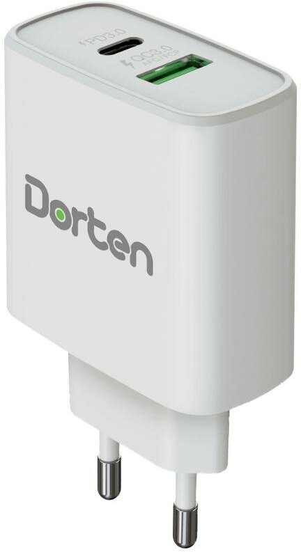 Купить Сетевое зарядное устройство Dorten 2-Port USB 20W Wall Quick Charger PD3.0+QC3.0 White
