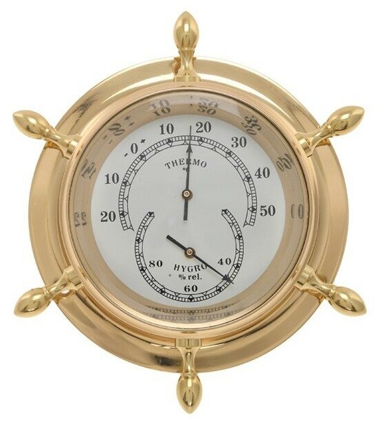 Купить Метеостанция термометр, гигрометр "Морской штурвал", латунь, d.15см