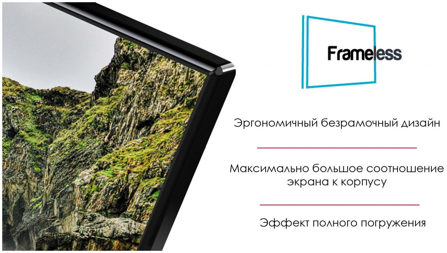 | Плюсы: | Большой экран, отличное разрешение, хорошая цветопередача, практически безрамочный. Нет необходимости в антене, множество каналов, хорошо ловит интернет. |