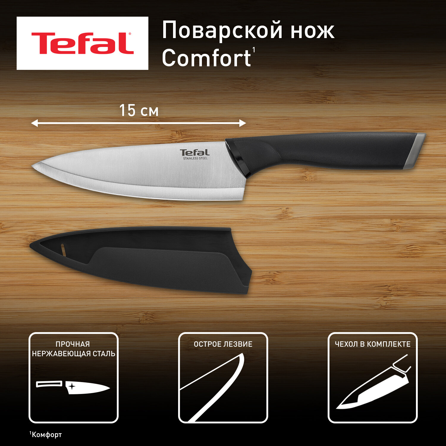 Нож поварской TEFAL Comfort 15 см K2213104, с чехлом