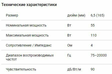 | Мощность | 55 Вт (номинальная), 110 Вт (максимальная) |
