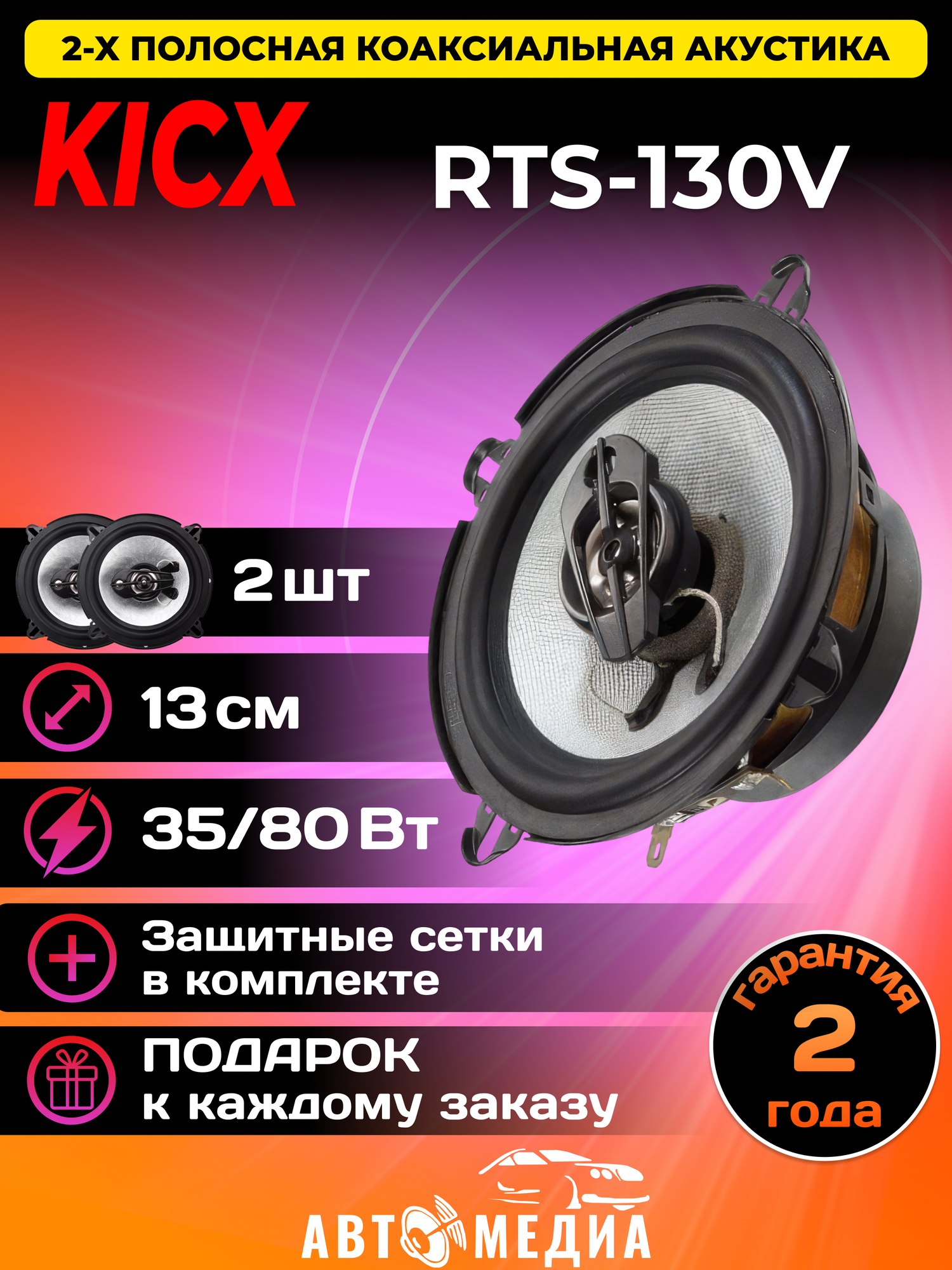 Динамики 2-полосные коаксиальные (80 Вт, 13 см, 2 шт) KICX RTS-130V. Товар уцененный