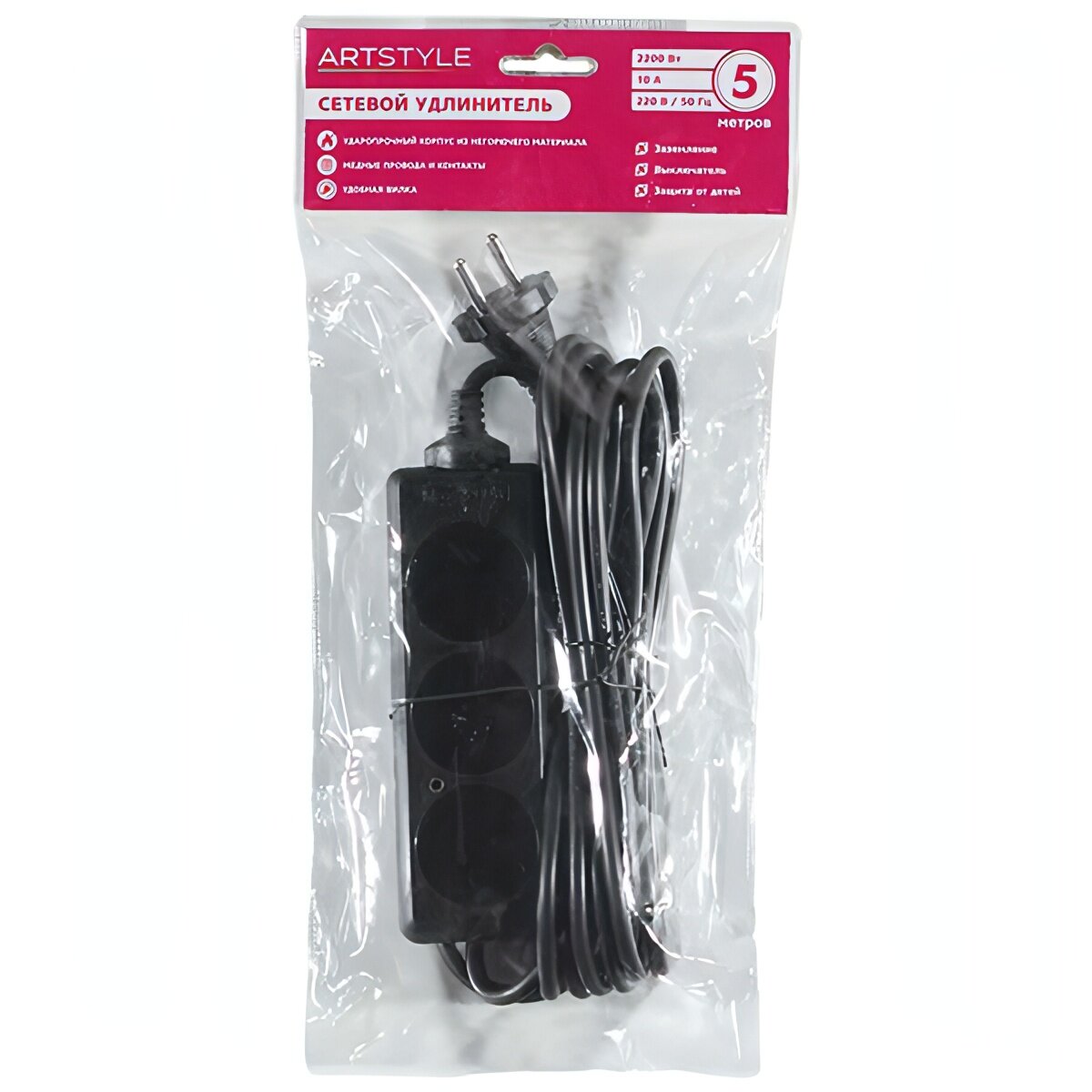 Сетевой удлинитель ARTSTYLE CL-C35B черный, 5 м, 3 гнезда