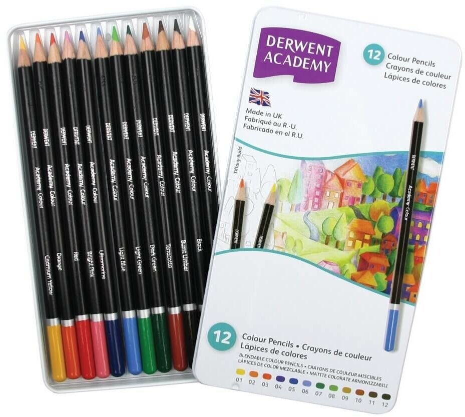 Купить Набор цветных карандашей Derwent Academy Colour, металл пенал, 12 цветов