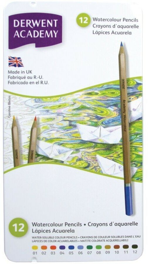 Набор акварельных карандашей Derwent Academy Watercolour, металл пенал, 12 цветов интересное: