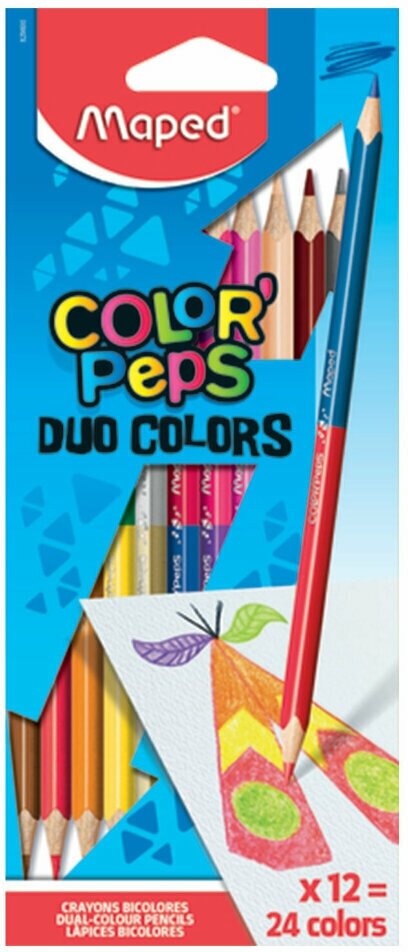 Карандаши двусторонние MAPED (Франция) "Color'Peps Duo", 12 штук, 24 цвета, трехгранные, 829600