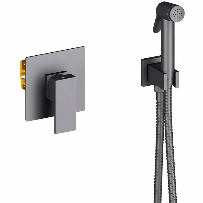 | Комплектация | Смеситель скрытого монтажа- 1 шт. Декоративная накладка смесителя (латунная) - 1 шт. Ручка управления смесителем - 1 шт. Шланг душа 1,2 м - 1 шт. Отвод из стены - держатель лейки (латунный) - 1 шт. Гигиеническая лейка (пластик) - 1 шт. Инструкция - 1 шт. |