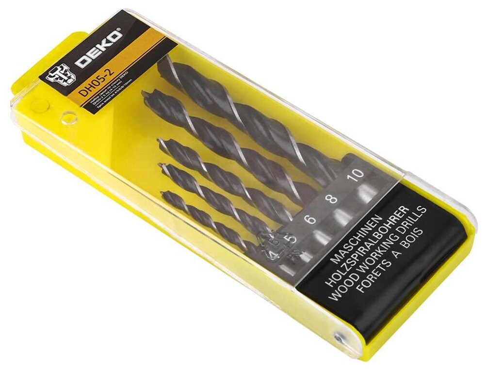 Набор сверл DEKO DH05 для дерева, твердосплавные, цилиндрические, 4-10 мм