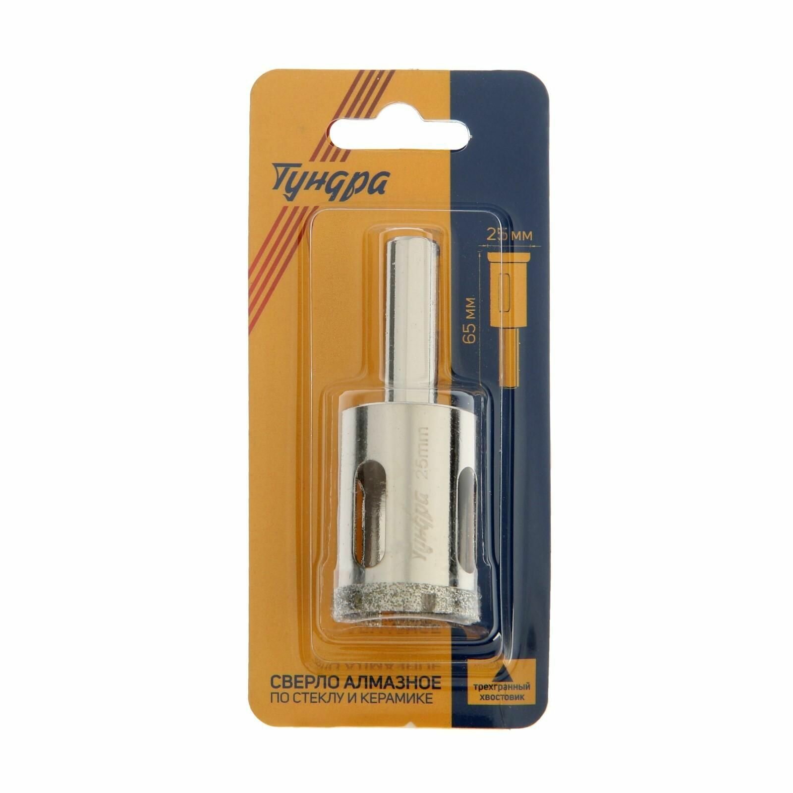Сверло алмазное по стеклу и керамике TUNDRA, трехгранный хвостовик, 65 х 65 мм 1935849