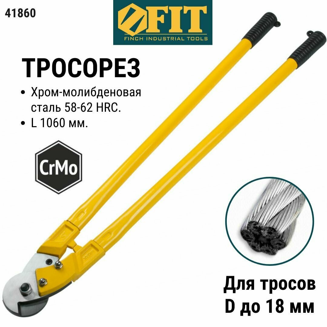 Тросорез FIT HQ 41860, 1060 мм, Профи CrMo, HRC58-62, стальной трос до 18мм. интересное: