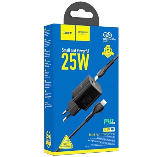 Купить СЗУ, 1 PD 25W (N19), HOCO, Type-C to Lightning, Безопасный сертификат, черный