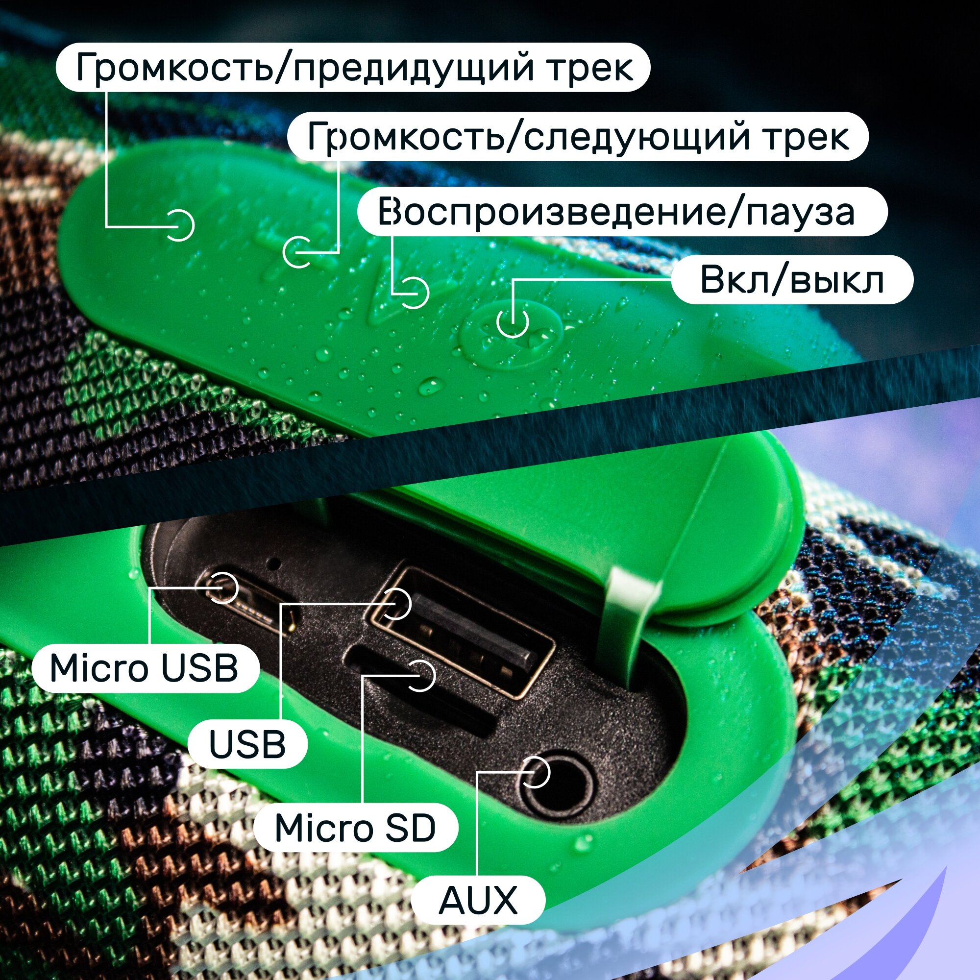 Влагозащитная колонка беспроводная музыкальная bluetooth 5.0, AMFOX, ASP-777, 2 динамика по 5Вт, как jbl акустика с подсветкой, xiaomi, камуфляж
