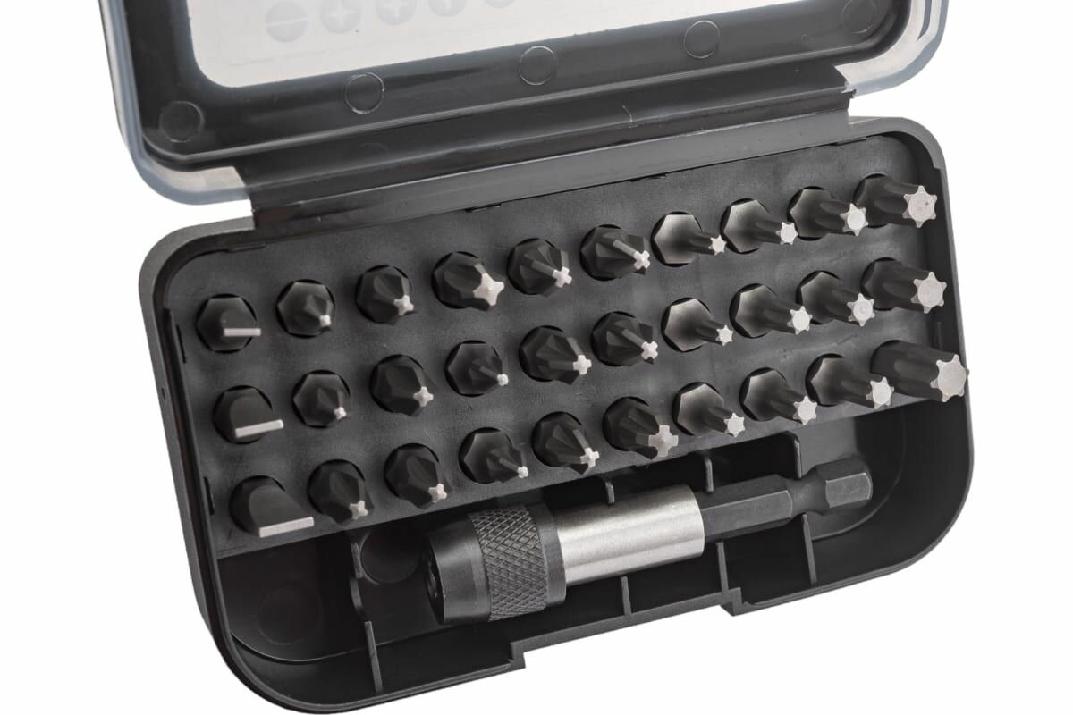 Набор бит (D-30667)31 шт: PH1, PH2, PH3, PZ1, PZ2, PZ3, T10, T15, T20, T25, T30, T40, Sloted (4,5.5,6.5) + магнитный держатель интересное: