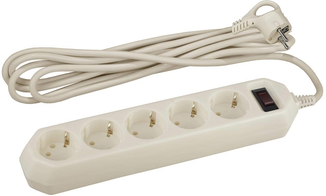 Сетевой фильтр ЭРА USF-5es-3m-I с базовой защитой с заземлением с выключателем 5 розеток 3м 10А слоновая кость