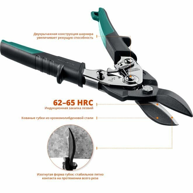 Ножницы по металлу 300 мм прямой рез, с двойным рычажным механизмом