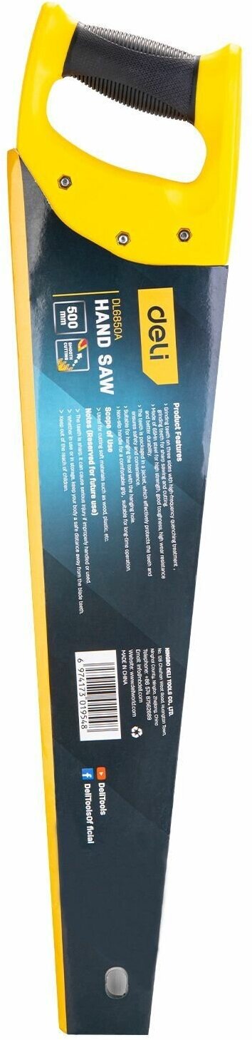 Купить Ножовка (пила) по дереву Deli DL6850A 500мм (7 зубьев на дюйм, 3D заточка, рукоять из двухкомпонентного противоударного пластика)