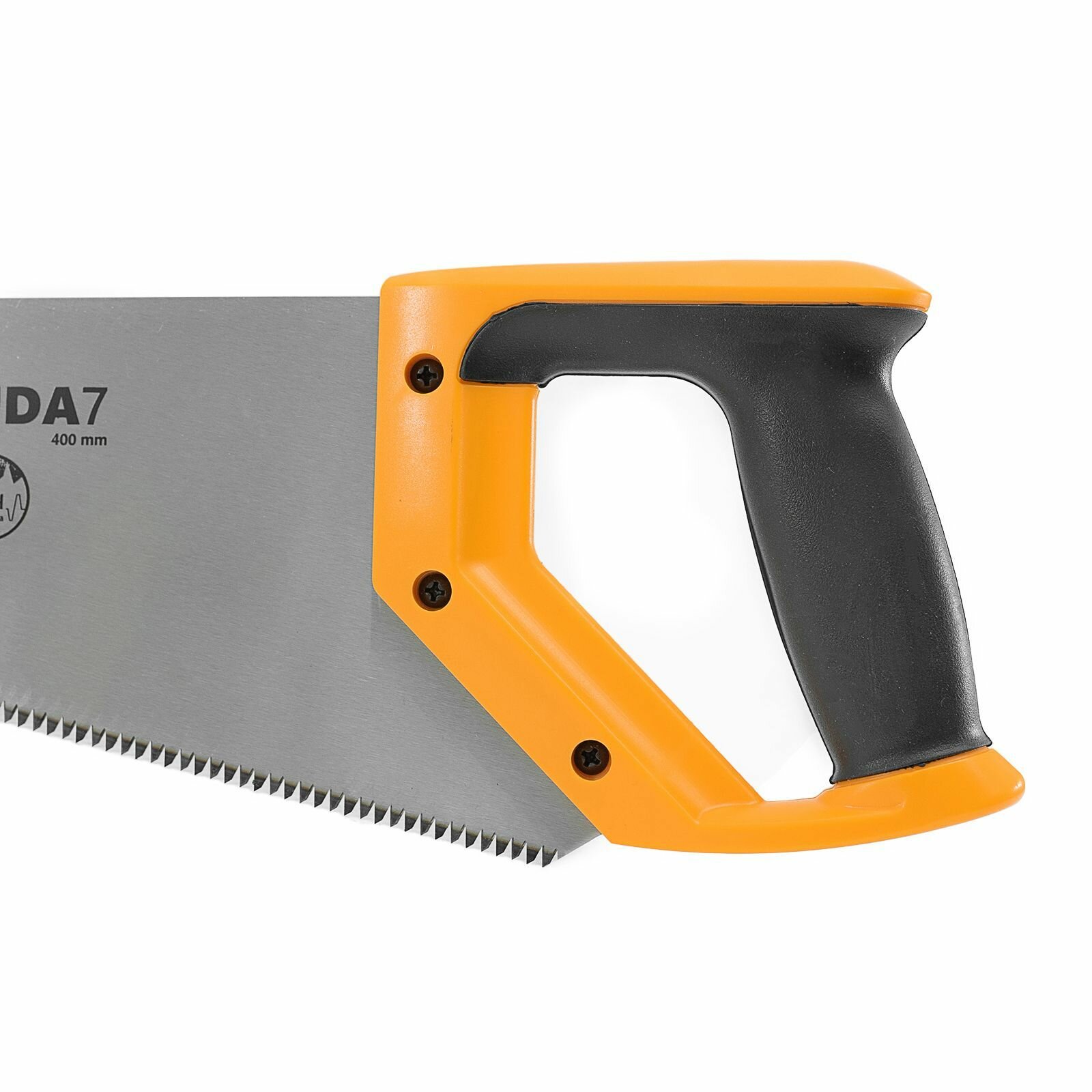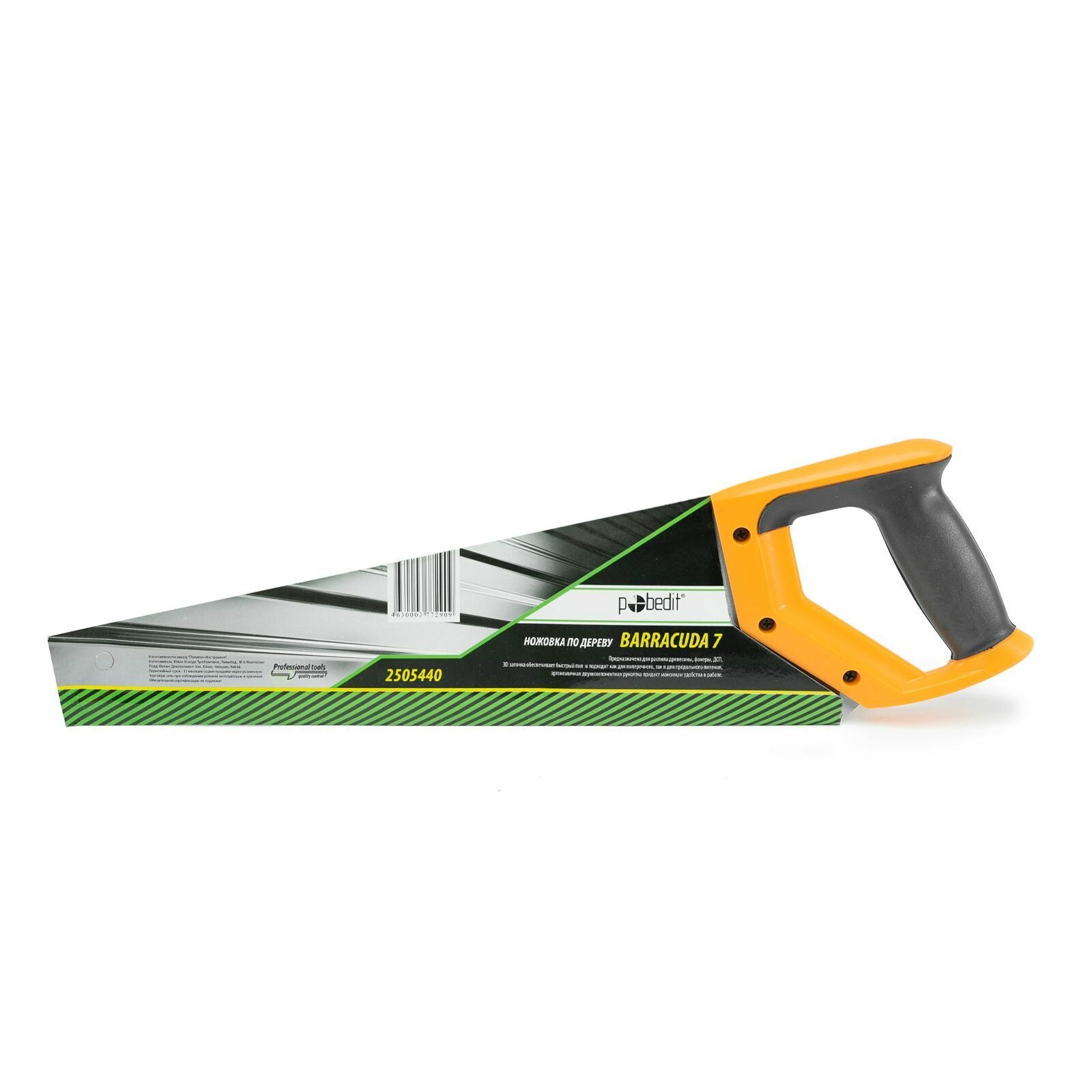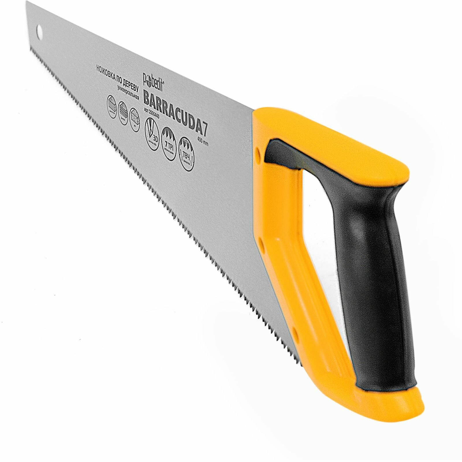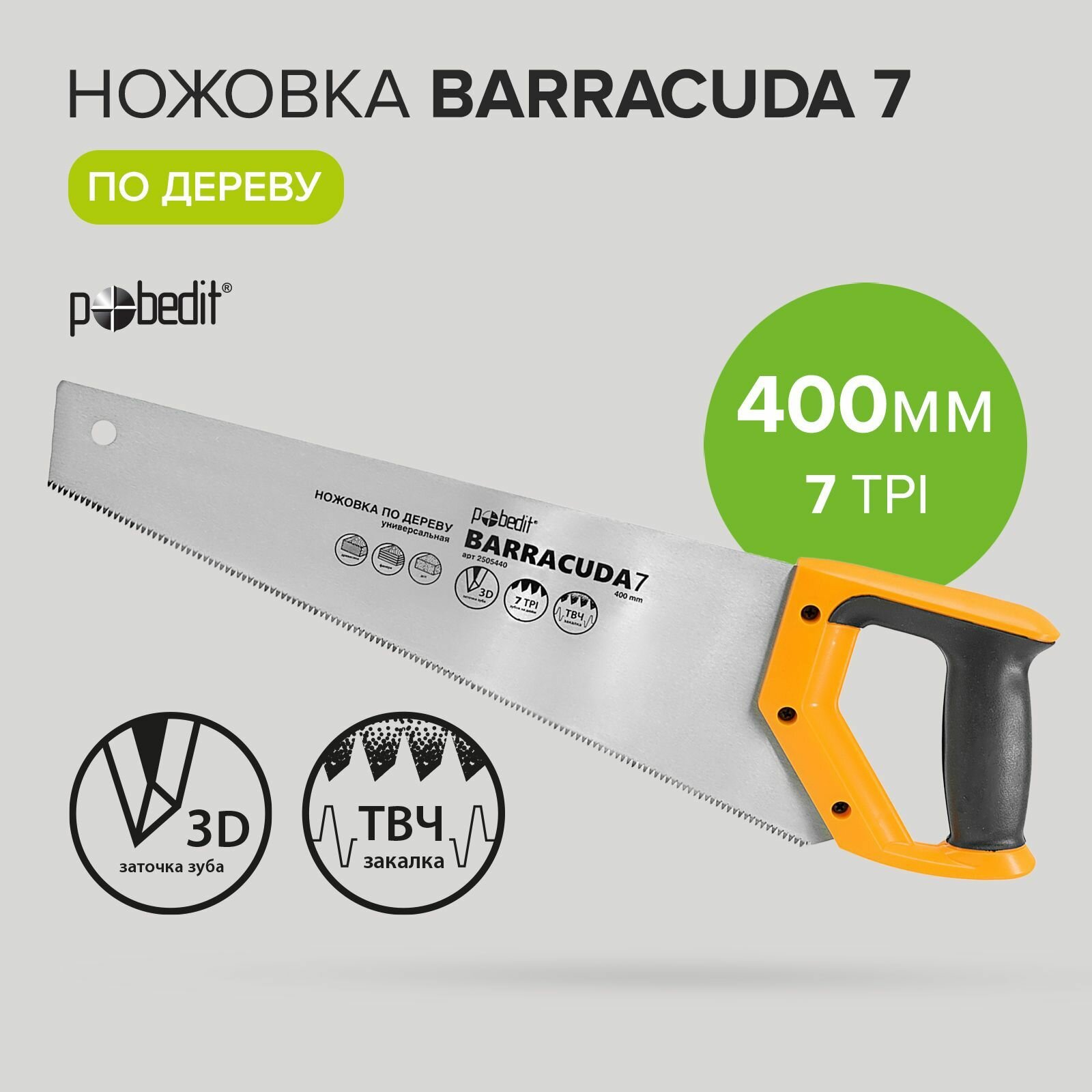 Ножовка по дереву Barracuda 7 Pobedit, 400 мм, закалённый средний зубец, 7 зубцов на дюйм, 3D заточка, двухкомпонентная рукоятка интересное: