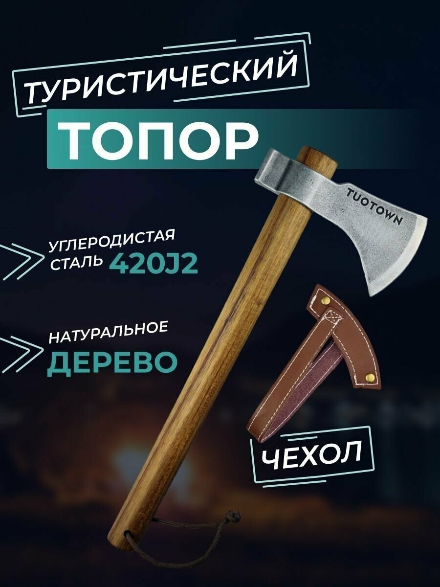 Топор туристический походный с чехлом, тактический с молотом, TUOTOWN интересное: