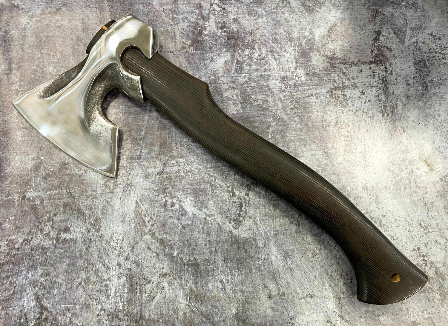 Топор большой кованый черный, сталь 65Г, рукоять ясень интересное: