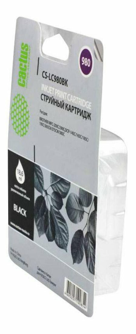 Картридж струйный Cactus CS-LC980BK для Brother DCP-145C/165C, MFC-250C/290C, 300стр., черный