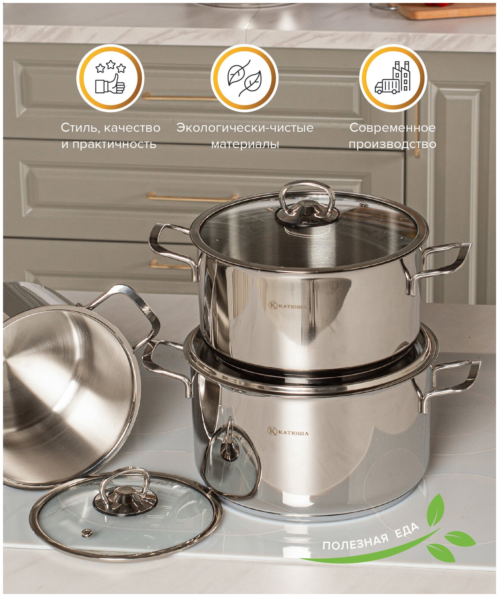 | Плюсы: | Ещё не пробовали готовить. Купили для заготовок. Это не первая кастрюля от Катюши. Поэтому из разных вариантов была выбрана именно кастрюля Катюша.