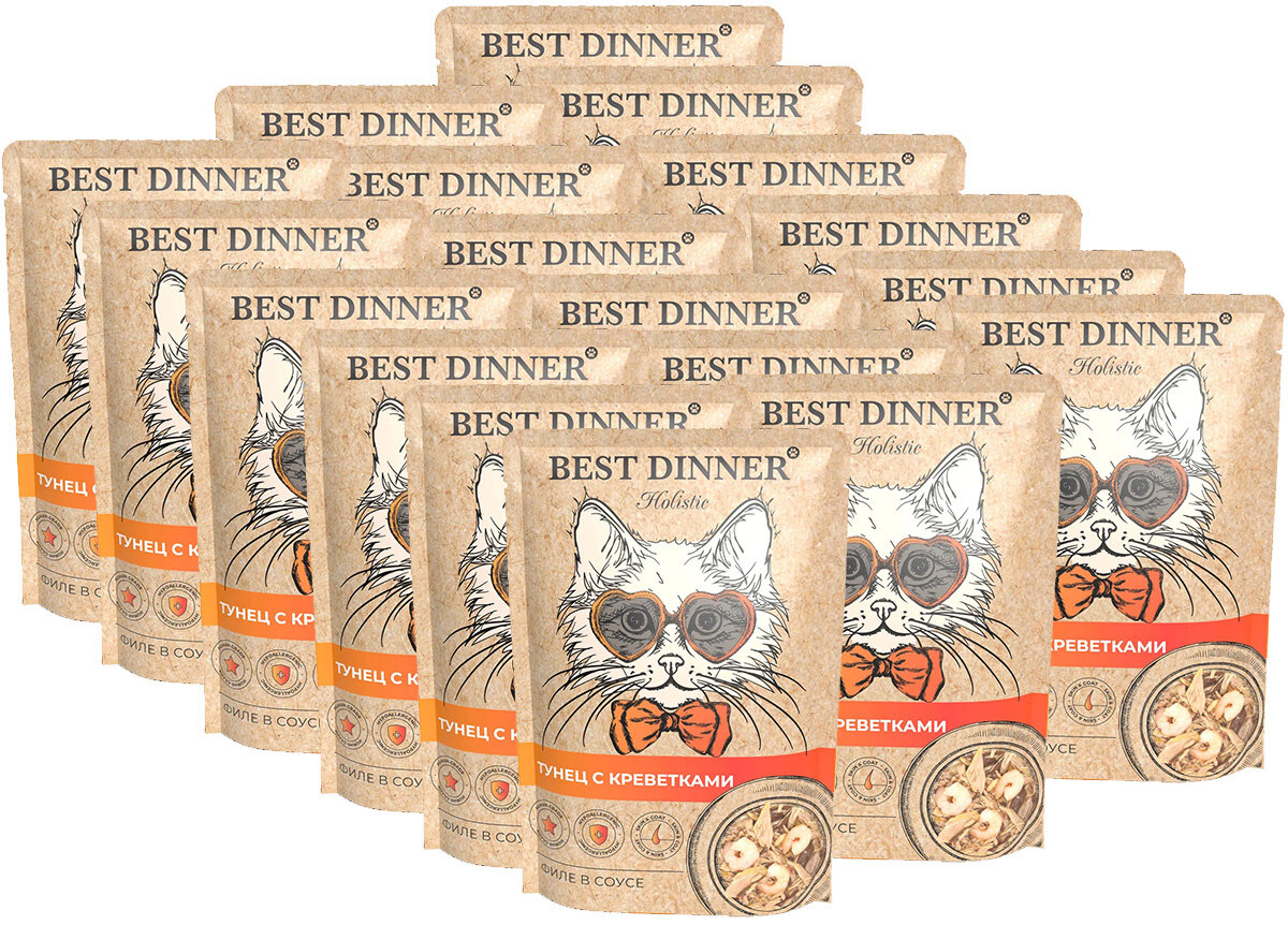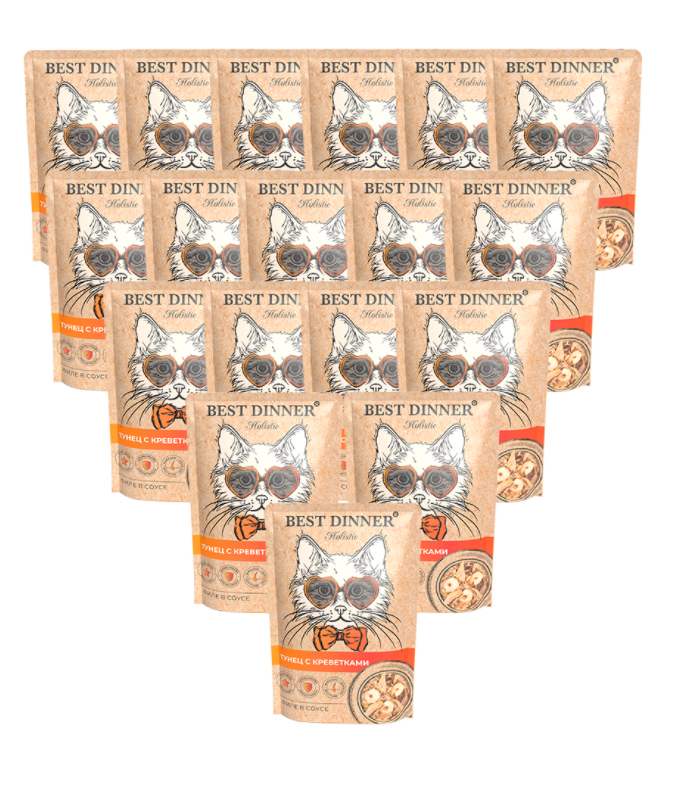 Купить Best Dinner Holistic влажный корм для взрослых кошек с тунцом и креветками в соусе в паучах - 70 г х 18 шт